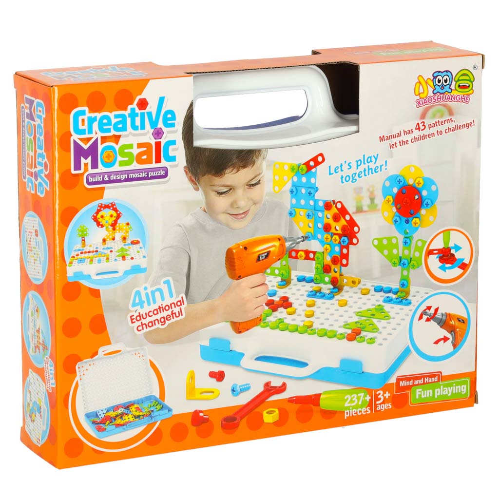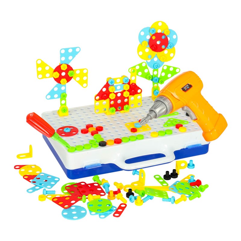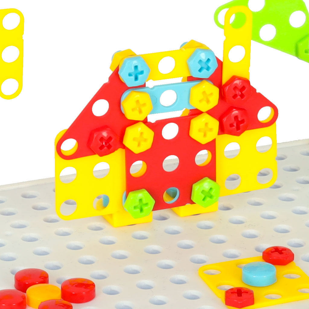 Izglītojošs konstruktors ar dažādām krāsainām detaļām, skrūvēm un skrūvgriezni - ļaus bērnam izveidot dažādas konstrukcijas