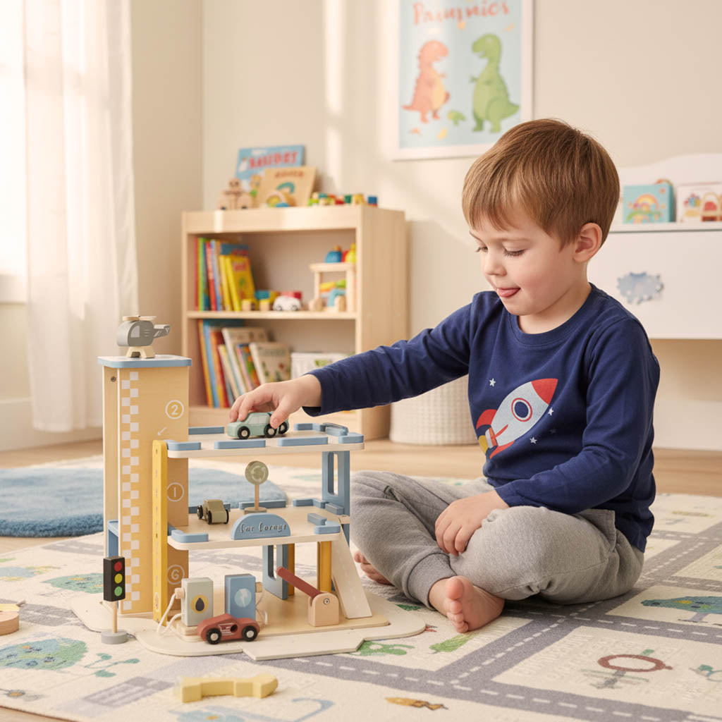 Koka garāža ar liftu ir ne tikai lieliska izklaide, bet arī māca plānošanu un attīsta koordināciju