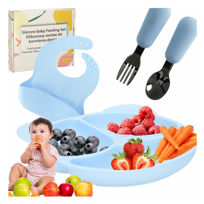 Bērnu trauku komplekts ir izgatavots no augstas kvalitātes, pārtikai droša silikona