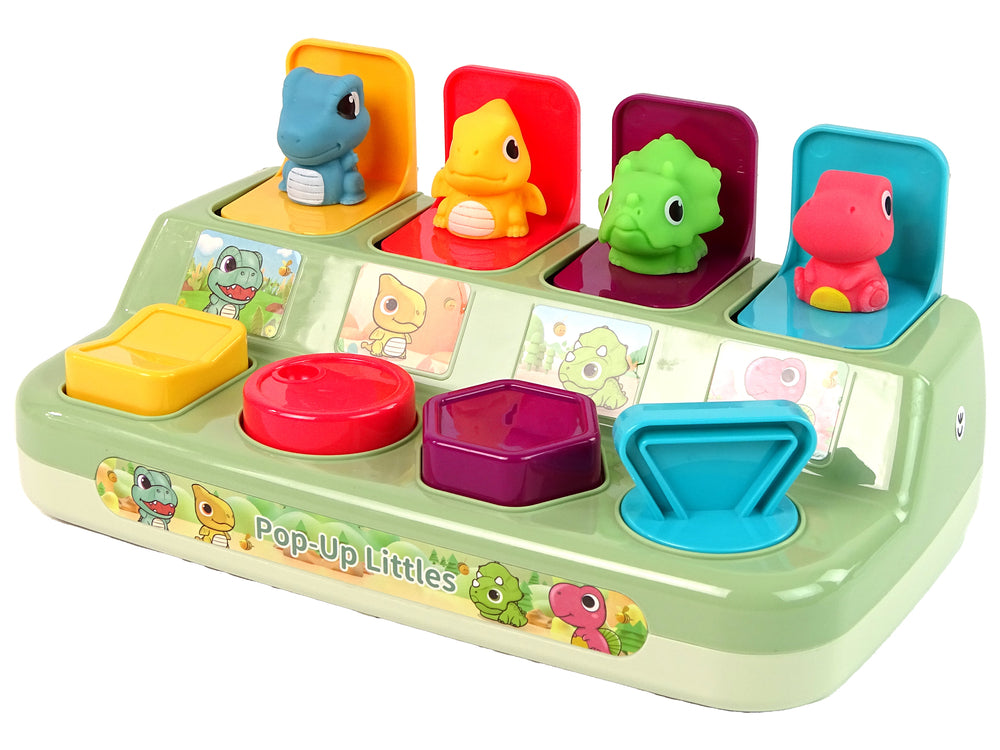 Rotaļlieta pēc noteiktas formas nospiešanas vai pagriešanas ļauj parādīties dažādiem dinozauriem