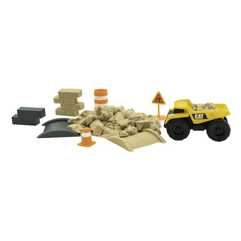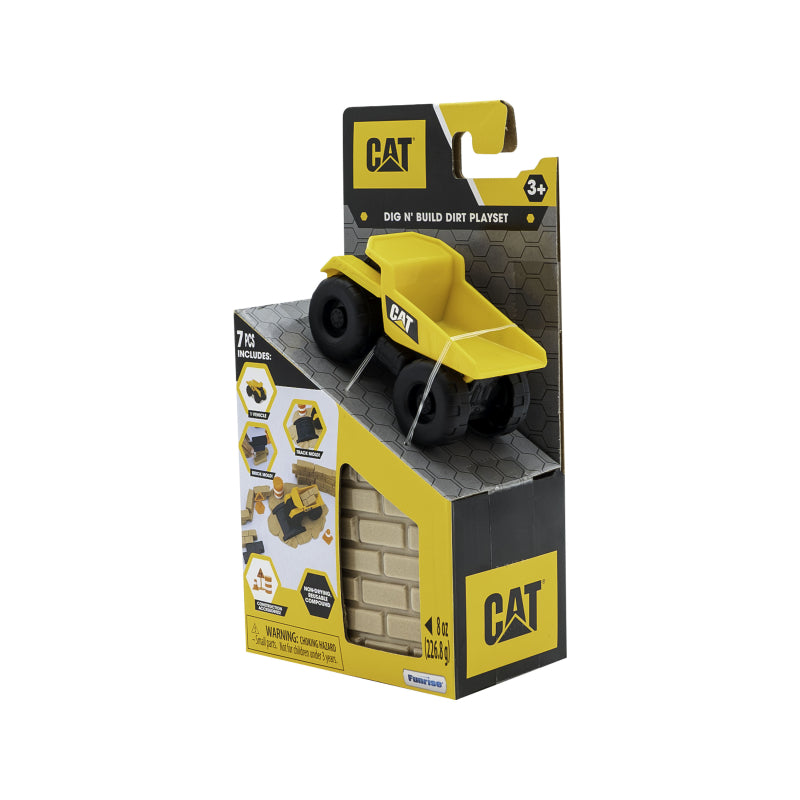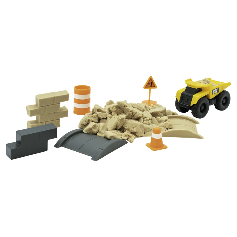 Komplektā ietilpst transportlīdzeklis, smilšu vai cementa simulācija (226g.), piederumi satiksmes kontrolei un veidnes ķieģeļu vai cementa bloku izgatavošanai