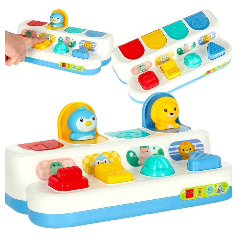 Rotaļlieta ir lieliski piemērota mazuļu roku prasmju, kā arī loģikas attīstībai. Krāsainās figūriņas un interaktīvie elementi noteikti piesaistīs bērnu uzmanību un mudinās viņus spēlēties