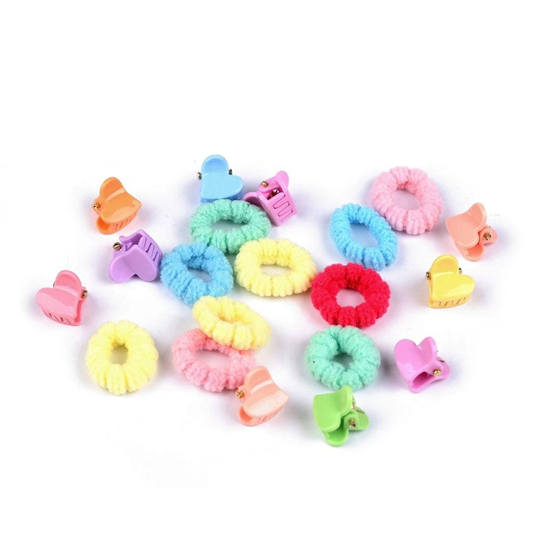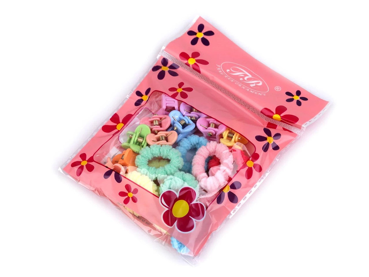 Komplektā ietilpst: 10 matu sprādzītes un 10 matu gumijas