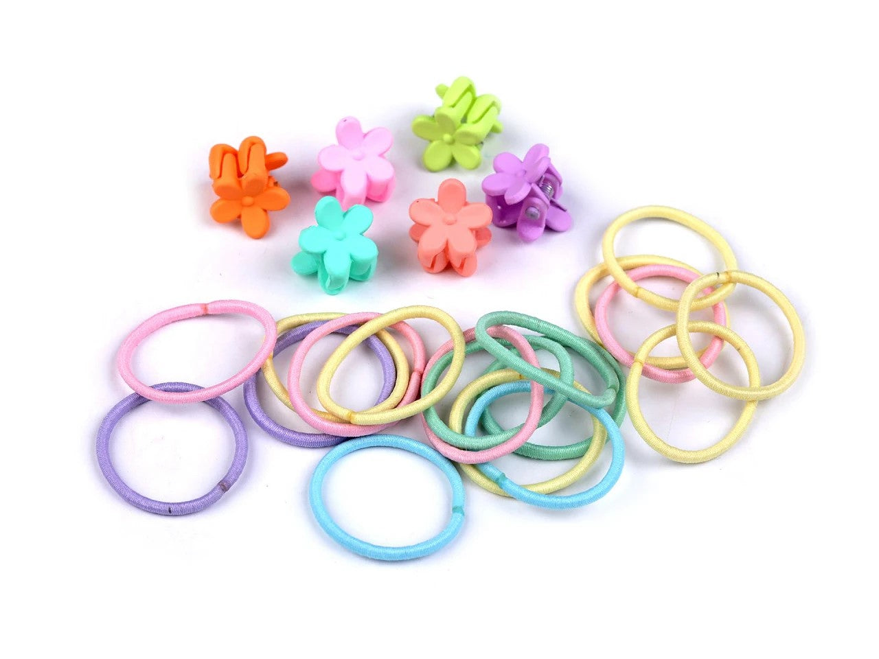 Komplektā ietilpst: 6 matu sprādzītes un 18 matu gumijas