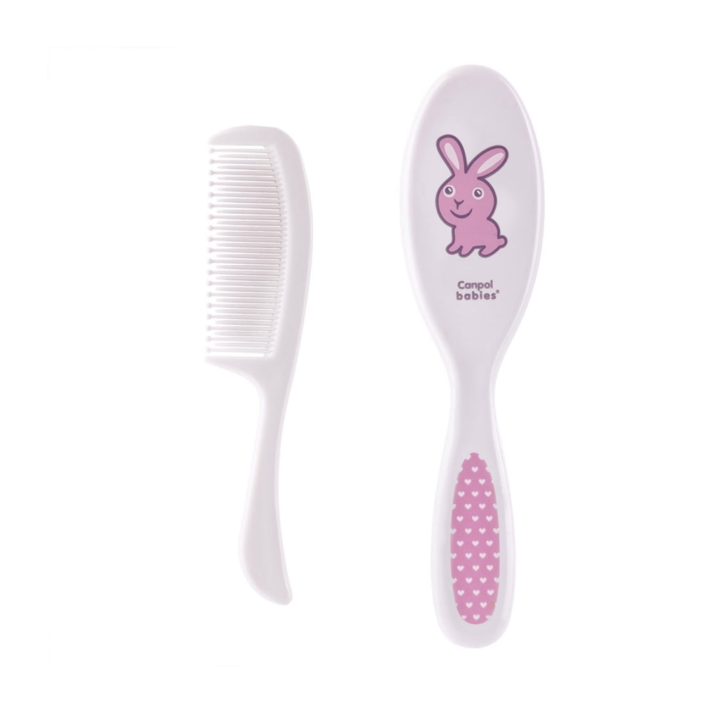Matu kopšana komplekts sastāv no ķemmes ar plastmasas apaļiem saru galiem un matu ķemmes, kuras sari izgatavoti no mīkstas sisntētikas