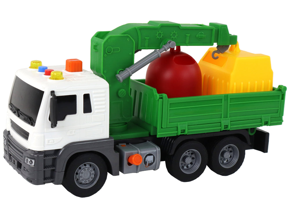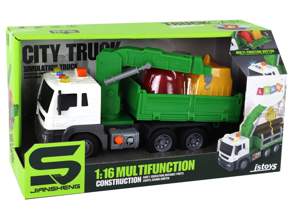 Auto ir krāns konteineru iecelšanai un izcelšanai